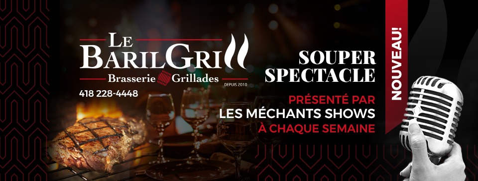 En collaboration avec le restaurant Baril Grill, nous offront des forfaits spectacles pour bien manger et vous divertir.